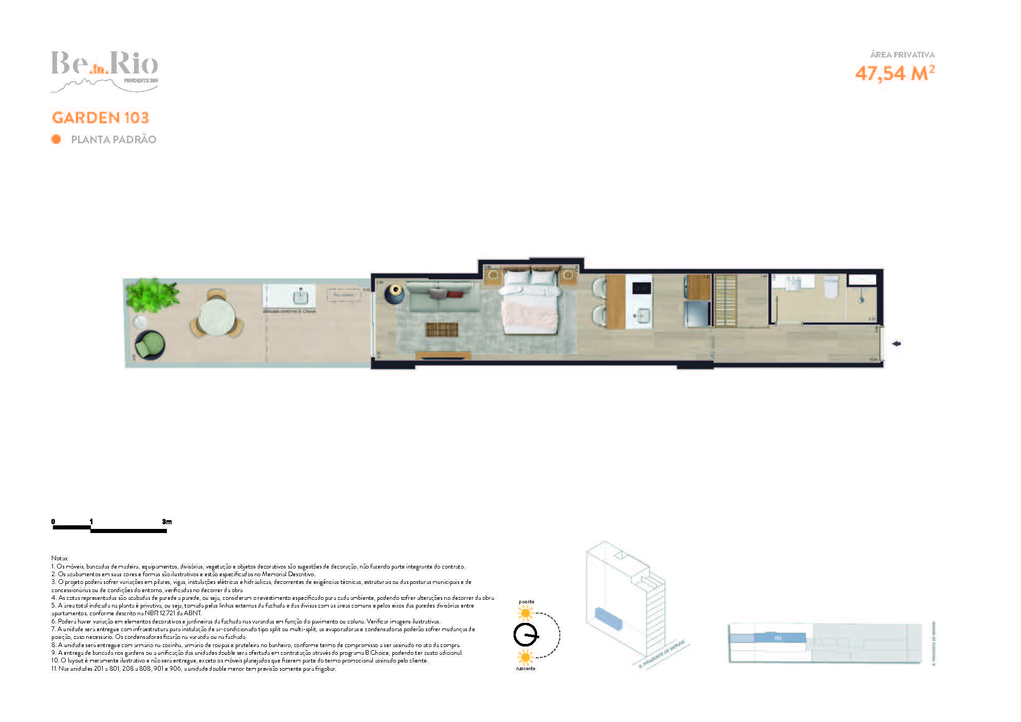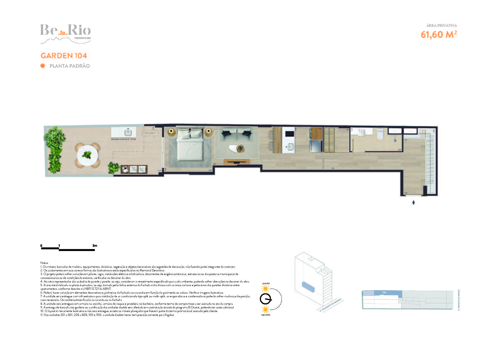 Os apartamentos garden do Be In Rio Prudente 589 possuem metragens que vão de 47 m² a 61 m², com 1 quarto. As unidades oferecem espaços externos privativos, ideais para quem busca mais conforto e conexão com áreas abertas. Os gardens contam com kit bancada exclusivo, armário ou closet design, infraestrutura para split, lavanderia planejada e acabamentos refinados. São ideais para uma vivência residencial moderna e funcional em uma das ruas mais valorizadas de Ipanema.